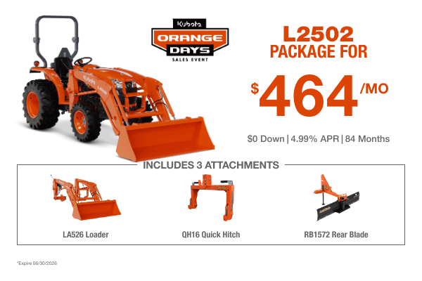 TAKE ADVANTAGE OF OUR EXCLUSIVE OFFERS ON SELECT KUBOTA PRODUCTS.